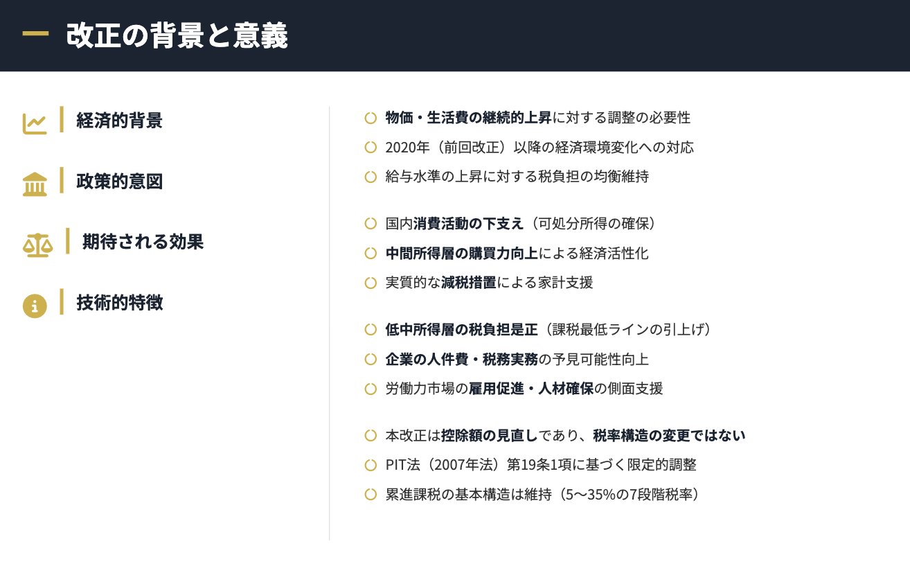 - 人件費/税額見込み:課税最低ライン上昇により、総額では源泉税負担が減少傾向(賃金テーブル別のインパクト試算推奨)。